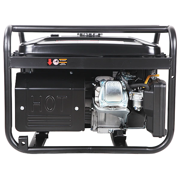 Прочная рама надежно защищает бензогенератор от повреждений. Двигатель установлен на толстых резиновых подушках, которые отлично гасят вибрации. Техническое обслуживание агрегата максимально упрощено - воздушный фильтр, маслозаливная горловина и другие узлы, периодически требующие внимания, расположены на видном месте с хорошим доступом.