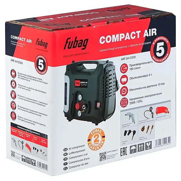 Безмасляный компрессор FUBAG Compact Air + набор из 5 предметов