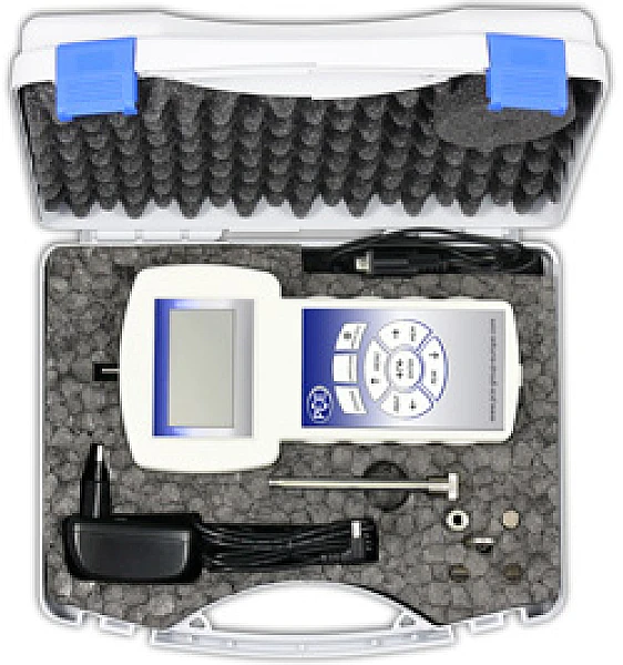 x динамометр PCE-FG 500 в комплекте с аккумуляторами, 1x адаптер сенсора, 1x плоский адаптер сенсора, 1x крюк, 1x адаптер-шарик, 1x адаптер-острие, 1x удлинитель адаптера (90 мм), 1x программное обеспечение с кабелем RS-232, 1x сетевой адаптер, 1x приборный кофр