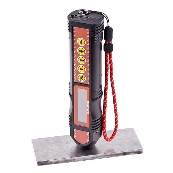 ЭМА-толщиномер EM4000 предназначен для проведения толщинометрии стальных труб, листового проката, прутов, и других изделий из стали, алюминия и других металлов с рабочим зазором между датчиком и металлом до 3х мм. Для работы ЭМА толщиномера не требуется предварительная подготовка поверхности, не требуется наличие контактной жидкости. В качестве зазора может выступать грязь, слой ржавчины, слой солевых отложений или другое непроводящее покрытие (краска, лак, эмаль, пластик и т.д.). Помимо измерения толщины металла, EM4000 позволяет измерить толщину непроводящего покрытия на металле.