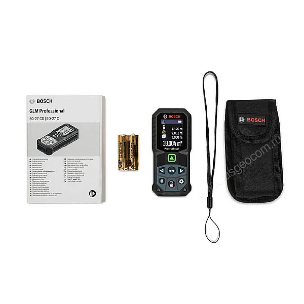 Bosch GLM 50-27 CG Professional прост в использовании благодаря вспомогательной функции справки и яркому цветному экрану. Предусмотрена память для сохранения до 30 значений. Звуковое оповещение, которое сообщает об успешном замере, дублируется вибрационным сигналом. Это актуально на стройплощадке, когда поблизости работает тяжелая техника или мощный ручной инструмент.