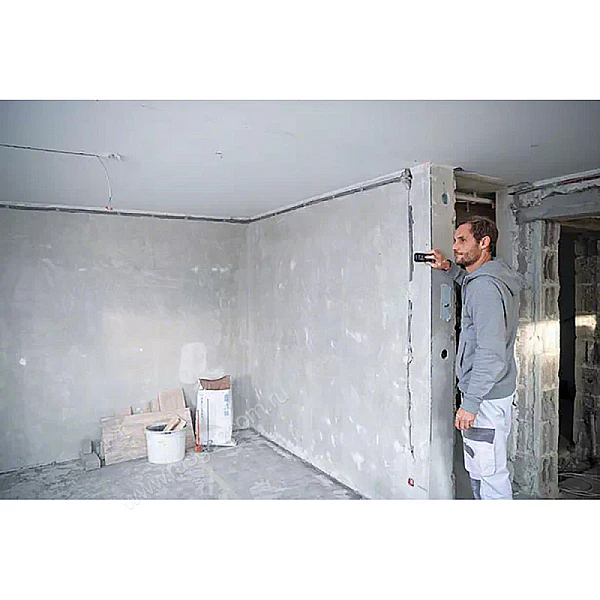 Дальномер станет отличным выбором для стройки за счет устойчивости к падениям и пыле-влагозащите корпуса по классу IP65. Корпус оборудован амортизирующими резиновыми накладками, которые эффективно гасят и рассеивают энергию удара.