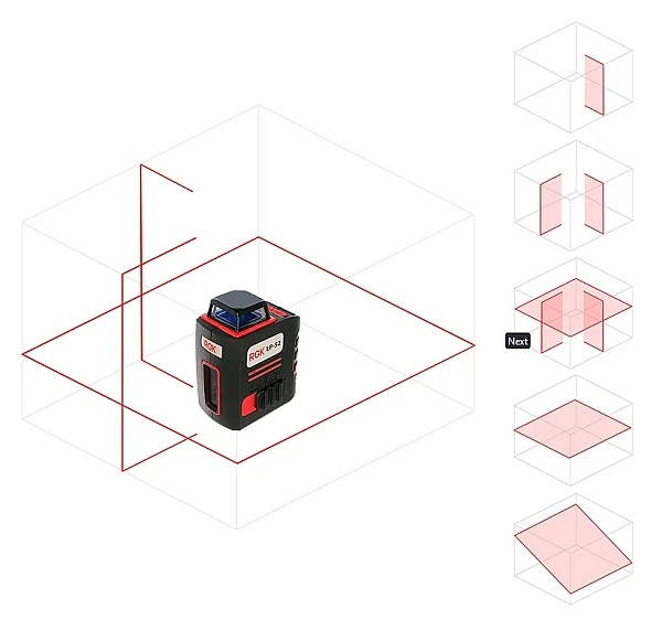 При включении прибора проецируется только горизонтальная плоскость. Для активации вертикальных необходимо нажать соответствующую клавишу на верхней панели прибора: