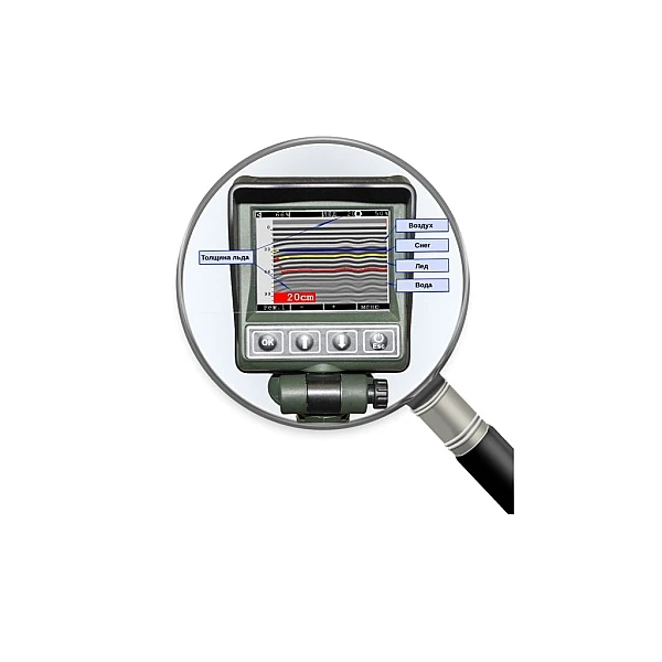 Ледомер ЛД-1200 является ручным геофизическим прибором (георадаром) для измерения толщины льда. Прибор излучает короткие радиоимпульсы малой мощности и формирует радиоизображение (радарограмму) из отраженных сигналов. Оператор с помощью прибора может определять толщину льда, находящегося под ним, держа прибор на высоте около 0.5-1 м, то есть без контакта с поверхностью. Для корректных измерений прибор необходимо слегка покачивать вверх-вниз с амплитудой в несколько сантиметров. Компактные размеры и небольшая масса прибора позволяют держать его в руке, постепенно передвигаясь по поверхности льда. На приборе в реальном времени отражается радарограмма с изображением границ раздела сред (воздух, снег, лёд) и измеренные значения толщины льда.