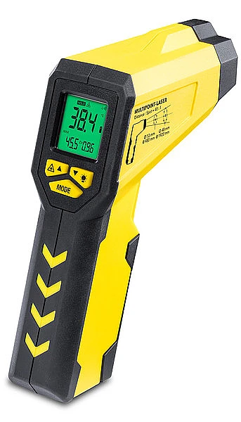 Особое внимание следует уделить инновационной многоточечной лазерной технологии TP7. Вместо того, чтобы просто указывать на цель измерения с помощью одного лазера или выделять размер пятна измерения с помощью двойного лазера, многоточечный лазер TP7 позволяет вам легко и точно захватывать объект измерения. В то время как один нацеливающий лазер в центре указывает точку измерения, еще восемь лазеров показывают граничные точки, окружающие поверхность измерения, что позволяет проводить максимально точные измерения за минимальное время.