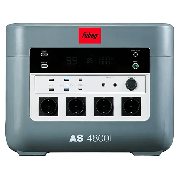Fubag AS 4800i оборудована множеством выходов, включая USB, USB-C, USB-A, DC и AC, а также разъемы для солнечной панели и автомобильного прикуривателя. Это позволяет одновременно подключать и заряжать разнообразные устройства.