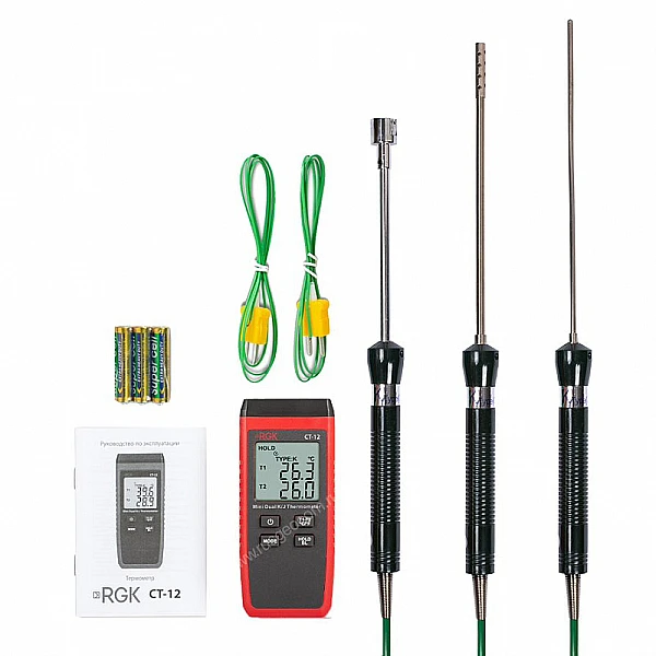 Термометр RGK CT-12 с зондом температуры воздуха TR-10A, поверхностным зондом TR-10S и погружным зондом температуры TR-10W