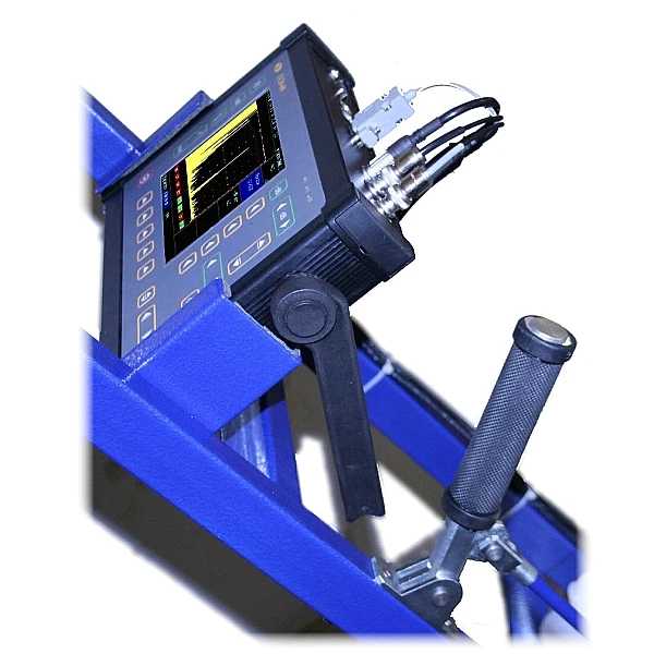 Установка контроля состоит из ультразвукового многоканального дефектоскопа УСД-60-8К и механической части на которой установлен акустический 16-ти элементный блок ультразвуковых преобразователей, 32-х канальный коммутатор и система подачи акустической жидкости.
