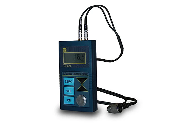 Ультразвуковой толщиномер TT 100 - полностью самокалибрующийся высокоточный прибор, измеряющий толщины изделий из металлов и их сплавов (в том числе цинка, железа, стали, алюминия и т.д.), пластмассы, керамики, стекла и других материалов до 300 мм с шагом 0.1.